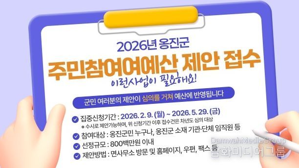 시민행정신문 강갑수 기자 | 옹진군은 2027년 예산 편성을 앞두고 2026년 주민참여예산 사업 공모를 오는 5월 29일까지 실시한다고 밝혔다.