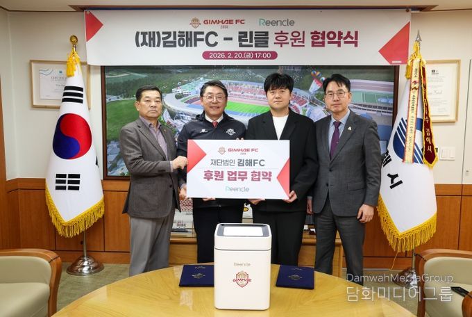 시민행정신문 장규호 기자 | 재단법인 김해FC가 지역 내 혁신 기업과의 파트너십을 통해 구단 경쟁력 강화와 지역 상생이라는 두 마리 토끼 잡기에 나섰다. 김해FC는 20일, 가정용 음식물처리기 전문 브랜드인 ‘린클(Reencle)’과 공식 후원 협약을 체결했다고 밝혔다. 이번 협약은 김해FC의 중장기 발전 5대 전략 중 하나인 브랜드 협력 프로젝트의 핵심 사업, ‘아이언 유니티 네트워크(Iron Unity Network)’ 구축의 일환으로 성사됐다.