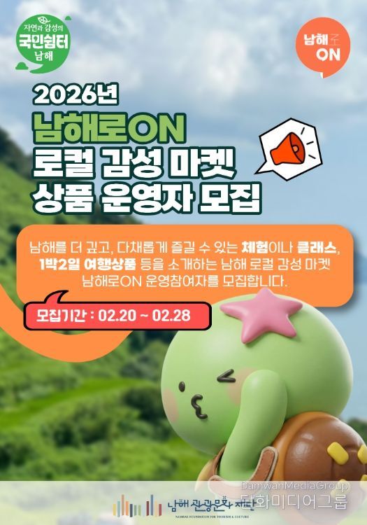 한편 ‘남해로ON 로컬 감성 마켓 상품 운영자 모집’과 관련한 문의 사항이 있을 재단 관광마케팅팀으로 연락하면 된다.