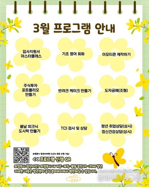 시민행정신문 강갑수 기자 | 의정부시 청년센터 청년공감터가 2월 24일부터 2026년 3월 봄맞이 프로그램에 참여할 청년을 모집한다.