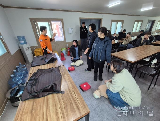 외국어로 제작된 교육 교재와 시청각 자료를 활용해 화재 발생 시 초기 대응 요령과 119 신고 방법, 소화기 사용법 등을 안내했으며, 심폐소생술 마네킹과 교육용 소화기를 활용한 체험 중심 실습도 병행했다.
