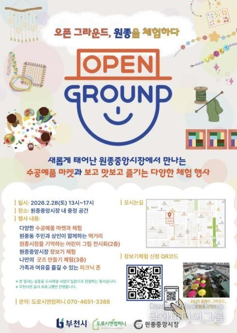 시민행정신문 기자 | 부천시는 2월 28일 오정구 원종동에 소재한 원종중앙시장(부천시 오정구 성오로124번길 47)에서 변화된 시장 공간을 시민이 직접 체험하는 ‘오픈 그라운드, 원종을 체험하다’ 행사를 연다.