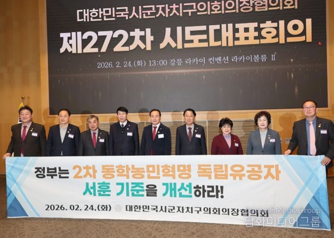 시민행정신문 강갑수 기자 | 대한민국시군자치구의회의장협의회가 지난 24일 강원 강릉 라카이 컨벤션에서 열린 제272차 시도대표회의에서 2차 동학농민혁명 참여자의 독립유공자 서훈 인정을 위한 법령 개정을 촉구했다.