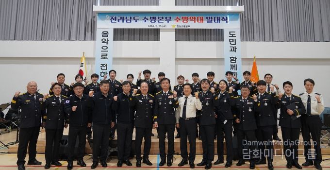 시민행정신문 강갑수 기자 | 전라남도소방본부(본부장 최민철)가 2월 25일 장흥소방서 대강당에서 ‘전남소방악대’ 발대식을 갖고, 음악을 통한 도민 안전 문화 확산과 소통 행보를 본격화했다.