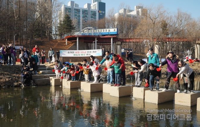 연수구는 25일 승기천 연수체육공원 일대에서 주민, 자원봉사자, 관계기관, ‘1사1하천 가꾸기 운동’ 참여기업 등 200여 명이 참여한 가운데 ‘승기천 수질 1등급 달성 기념 환경정화 및 버들치 방류 행사’를 개최했다.