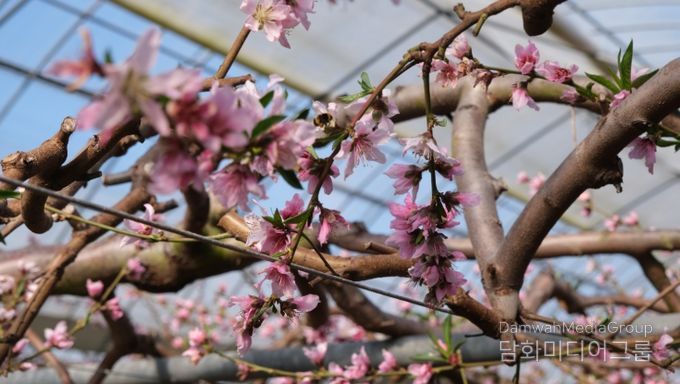 시민행정신문 강갑수 기자 | 충북 영동군 시설하우스 내에 겨울 한파를 이겨내고 피어난 복사꽃과 플럼코트 꽃이 만발했다.