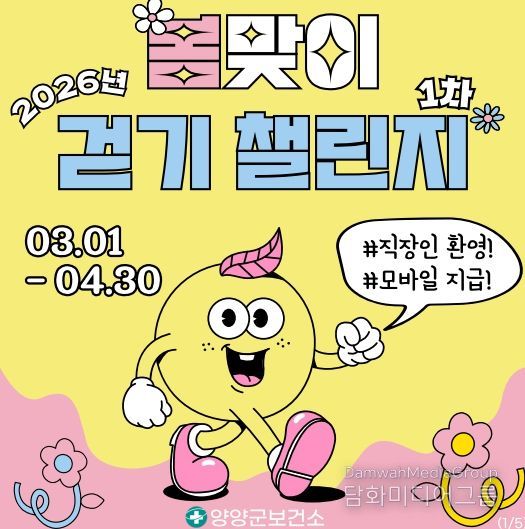 시민행정신문 기자 | 양양군보건소가 오는 3월 1일부터 주민 건강 증진을 위한 ‘2026년 고맙다 양양 걷기 챌린지’를 본격 운영한다.