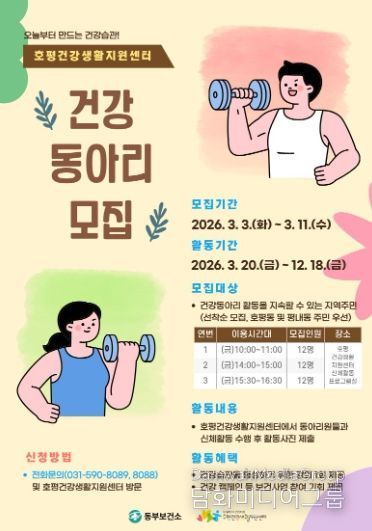 신현주 동부보건소장은 “지역 건강지표와 주민 수요를 반영해 건강동아리를 확대 운영한다”며 “주민이 일상에서 건강습관을 꾸준히 실천할 수 있도록 지원하겠다”고 말했다.