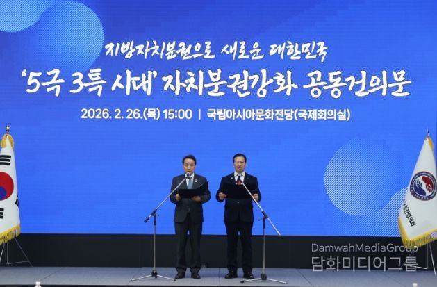 시민행정신문 기자 | 대한민국시장·군수·구청장협의회는 2월 26일 광주 국립아시아문화전당에서 민선8기 4차년도 제3차 공동회장단회의를 개최하고,『5극3특 시대 자치분권 강화 공동건의문』을 발표했다.