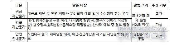 앞으로 주민 대피가 필요한 긴급 상황은 반드시 ‘위급재난문자’ 또는 ‘긴급재난문자’로 발송해 국민께 휴대전화 최대 음량의 알림 소리(40dB 이상 ‘삑’ 소리)로 위험 상황을 알린다.
