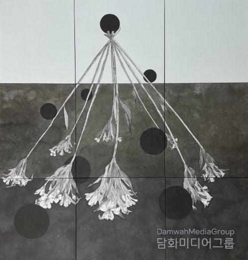 이번 전시에서 조 작가는 종이에 먹으로 작업한 한국화 작품 20여 점을 선보인다. 뿌리가 잘려 나간 절화와 검은 원을 한 공간에 배치해 형태가 있는 것과 없는 것이 공존하는 세계를 표현했다.
