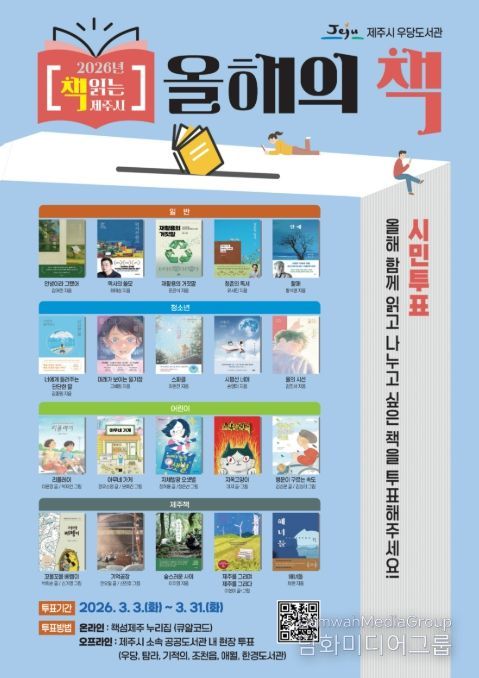 시민행정신문 기자 | 제주시 우당도서관은 ‘2026년 책 읽는 제주시 올해의 책’ 선정을 위한 시민투표를 3월 3일부터 3월 31일까지 실시한다.