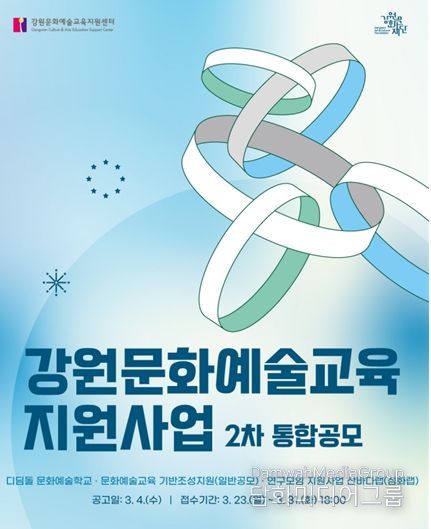 시민행정신문 강갑수 기자 | 강원문화재단은 문화예술교육 활성화와 도민들의 문화예술교육 향유 기회 확대를 위한 '2026년 강원문화예술교육 지원사업 2차 통합 공모'를 진행한다.