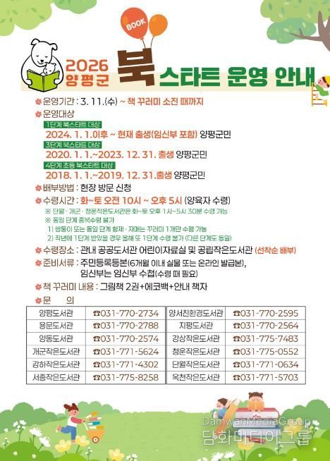 시민행정신문 강갑수 기자 | 양평군은 오는 11일부터 ‘2026년 북스타트 사업’을 본격 운영한다고 밝혔다.