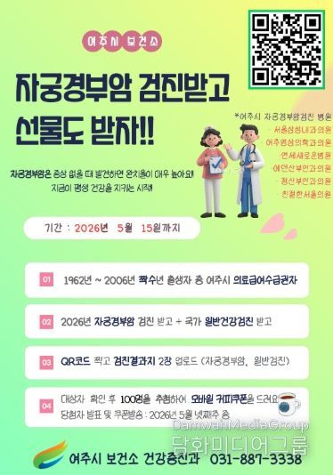 이번 이벤트는 오는 5월 15일까지 진행되며, 대상자는 여주시 관내 의료급여수급권자 중 1962년~2006년 짝수년생 여성이다. 해당 기간 내 자궁경부암검진과 일반건강검진을 모두 완료한 경우 QR코드를 통해 인증하면 추첨 대상에 포함된다.