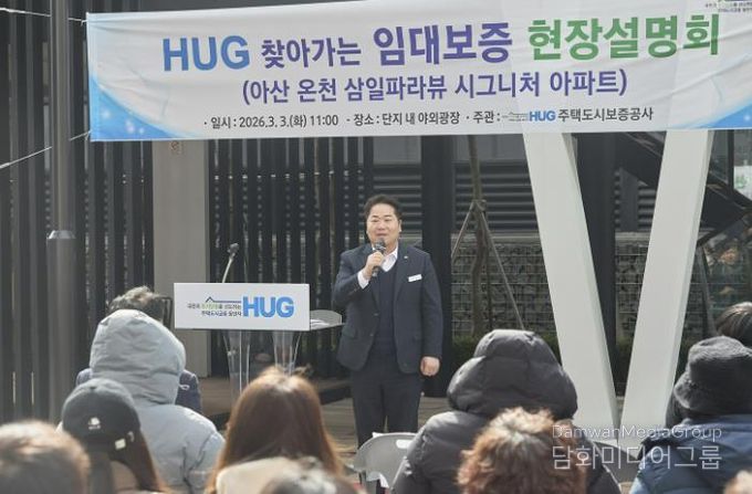 시민행정신문 강갑수 기자 | 아산시는 3일 온천동 삼일파라뷰 시그니처 단지 내 광장에서 주택도시보증공사(HUG)와 함께 임대보증금 보증이행 관련 현장설명회를 열고 임차인 보호 대책과 향후 절차를 안내했다.