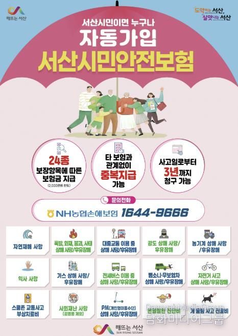 시민행정신문 강갑수 기자 | 충남 서산시가 각종 재난 및 안전사고에 대비해 시민안전보험을 시행 중이라고 밝혔다.