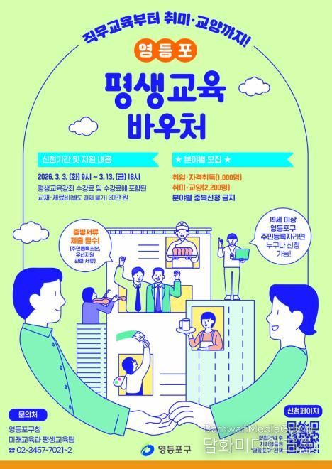 시민행정신문 강갑수 기자 | 영등포구가 구민의 평생학습 기회를 확대하고 역량 개발을 지원하기 위해 ‘평생교육바우처’ 사업을 운영한다고 밝혔다.