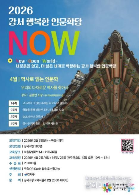 구는 이번 프로그램을 통해 구민들이 지역의 역사와 인문학적 가치를 되새기고, 강서구의 문화 정체성을 탐구하는 계기가 될 것으로 기대한다.