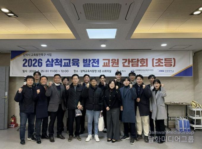 시민행정신문 강갑수 기자 | 삼척시 교육발전특구 사업의 일환으로 실시한 ‘2026 삼척 교육발전 교원 간담회’가 지난 2월 25일 삼척교육지원청에서 관내 유·초·중·고교 교원 70여 명이 참여한 가운데 성황리에 개최됐다. 이번 간담회는 3월 신학기부터 시행되는 3차년도 주요 사업을 학교 현장과 긴밀히 공유하고, 실질적인 협력 방안을 모색하기 위해 마련됐다.