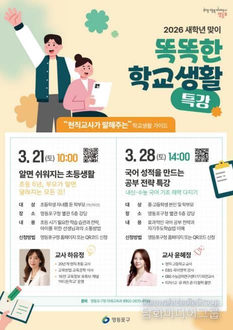 시민행정신문 강갑수 기자 | 영등포구가 새 학년을 맞아 초‧중‧고등학생과 학부모를 대상으로 ‘똑똑한 학교생활 특강’을 운영한다. 학생들의 원활한 학교 적응과 효과적인 학습 준비를 돕기 위해 마련된 프로그램이다.
