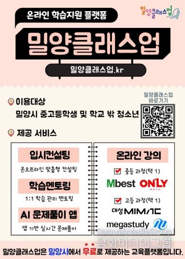 시민행정신문 강갑수 기자 | 경남 밀양시는 오는 9일부터 온라인 학습지원 플랫폼인 ‘밀양클래스업’을 새롭게 개편하여 운영한다고 5일 밝혔다.