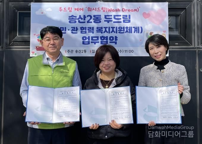 시민행정신문 강갑수 기자 | 의정부시 송산2동주민센터는 3월 4일 QUEEN크린셀프빨래방, 송산2동 지역사회보장협의체와 취약계층 세탁지원을 위한 두드림(민관 협력 복지지원체계) 케어 ‘워시드림(Wash Dream)’ 사업 업무협약을 체결했다.