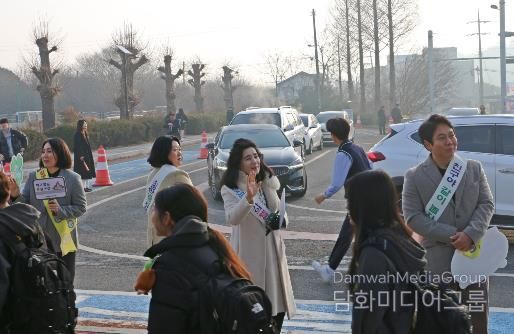 이번 캠페인에는 당진교육지원청 직원들이 참여해 이른 등교 시간부터 교문과 학교 주변에서 학생들을 따뜻하게 맞이하며 “안전하게 건너요”, “서로를 존중해요” 등의 인사와 함께 교통안전 수칙과 학교폭력예방 수칙을 고루 안내했다.