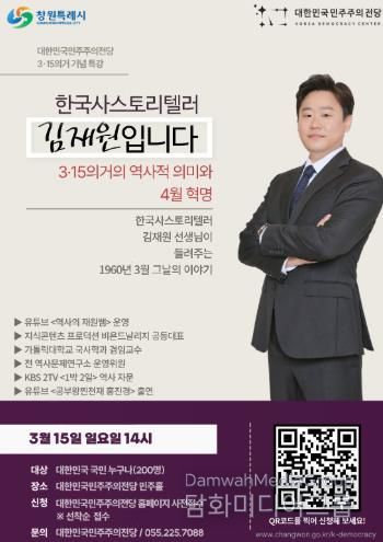 이번 특강은 가톨릭대학교 국사학과 겸임교수인 김재원 교수가 강연을 맡아 3·15의거의 역사적 의미와 4·19혁명으로 이어진 민주화의 흐름을 시민의 눈높이에 맞춰 쉽게 풀어낼 예정이다.