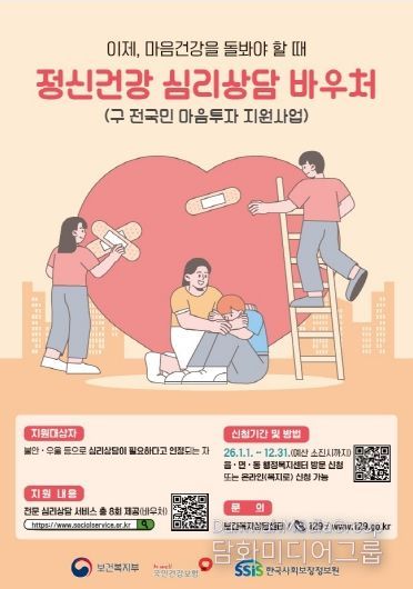 시민행정신문 기자 | 포항시는 우울과 불안 등 정서적 어려움을 겪는 시민들을 위해 지난해에 이어 올해도 전문 심리상담 서비스를 지원하는 ‘정신건강 심리상담 바우처 사업’을 추진한다고 밝혔다.
