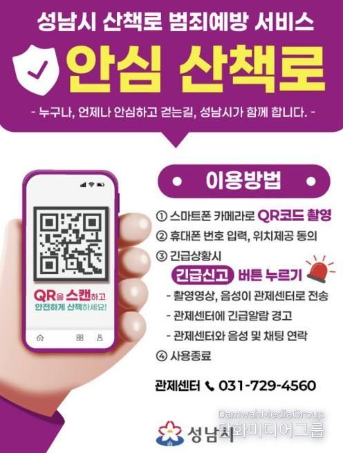 시민행정신문 강갑수 기자 | 성남시는 시민들이 보다 안심하고 산책로를 이용할 수 있도록 영장산과 불곡산 일대 산책로에 ‘범죄예방 서비스’를 6일부터 도입한다.