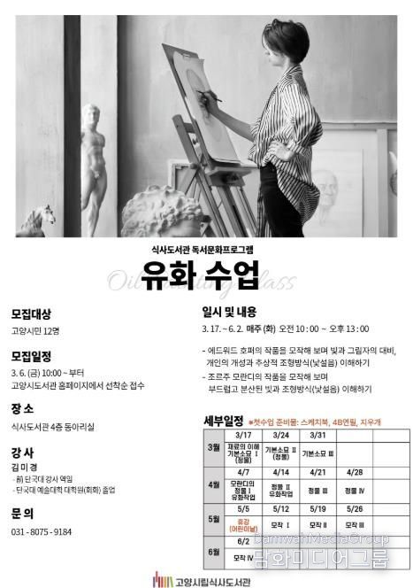 시민행정신문 강갑수 기자 | 고양특례시 식사도서관은 오는 3월 17일부터 공공도서관 성인 독서문화 프로그램 ‘유화수업’을 운영한다.