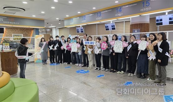 이번 캠페인은 행복민원실 직원 20여 명의 참여로 실시됐으며, 민원실을 찾는 시민들이 보다 친절한 응대를 통해 만족스러운 민원서비스를 받을 수 있도록 공무원의 서비스 마인드를 제고하기 위한 취지로 마련됐다.