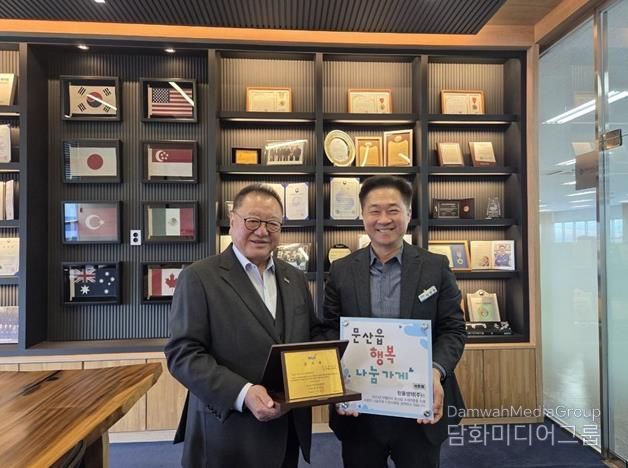 이학현 문산읍장은 “기업의 성장과 더불어 지역사회를 돌보는 사회적 책임을 실천해 주신 한울생약㈜에 깊이 감사드린다”라며 “이번 현판식이 나눔의 가치를 널리 알리고 더 많은 사업장이 동참하는 계기가 되길 바란다”라고 말했다.