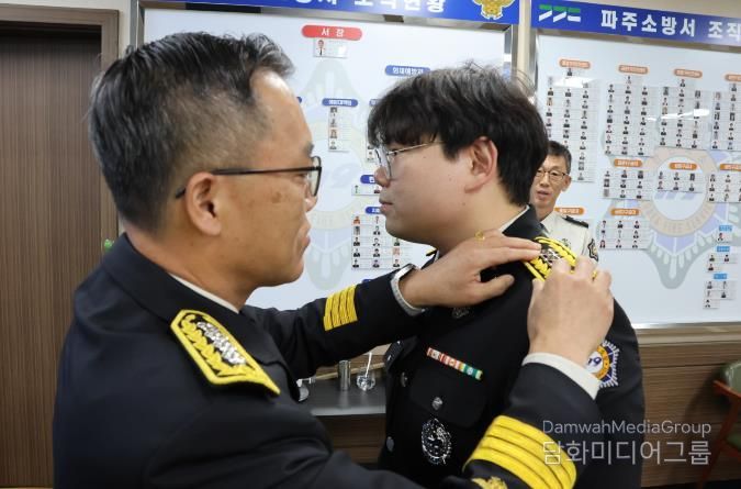 김명찬 파주소방서장은 “승진은 개인의 노력뿐 아니라 시민 안전을 위해 묵묵히 헌신해 온 시간의 결과”라며 “앞으로도 각자의 자리에서 전문성과 책임감을 바탕으로 시민의 생명과 안전을 지키는 역할을 충실히 해주길 바란다”고 말했다.