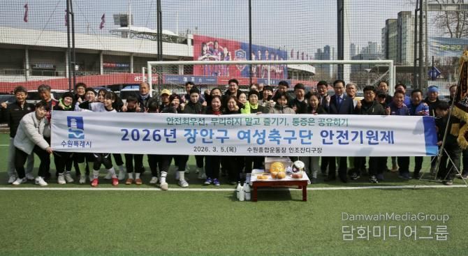 시민행정신문 기자 | 수원시 장안구 여성축구단은 지난 5일, 수원종합운동장 인조잔디구장에서 선수단과 관계자 등 30여 명이 참석한 가운데 2026년 안전기원제를 진행했다.
