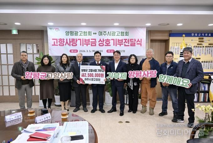 한편 양평군은 2024년부터 여주시 단체들과 고향사랑기부금 상호기부를 이어오고 있으며, 이번 기부를 포함해 총 5차례에 걸쳐 3,316만 원의 상호 기부가 이루어졌다.