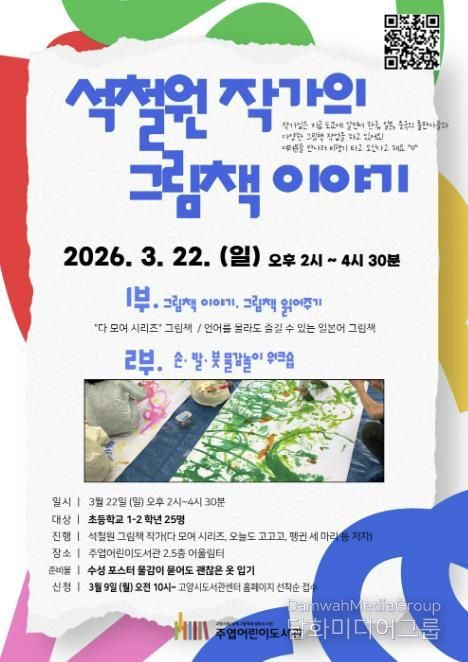 시민행정신문 강갑수 기자 | 고양특례시 주엽어린이도서관은 어린이들이 그림책 작가를 직접 만나 창작 이야기를 듣고 물감놀이에 참여할 수 있는 프로그램 ‘석철원 작가의 그림책 이야기’를 오는 3월 22일 운영한다.
