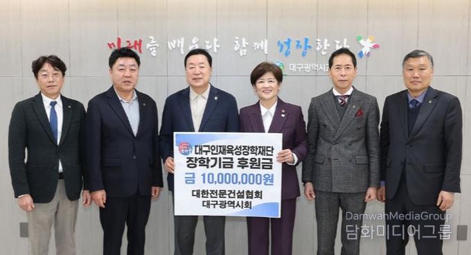 시민행정신문 기자 | 대구시교육청은 3월 5일 대한전문건설협회 대구광역시회가 장학금 1천만원을 대구인재육성장학재단에 기탁했다고 밝혔다.