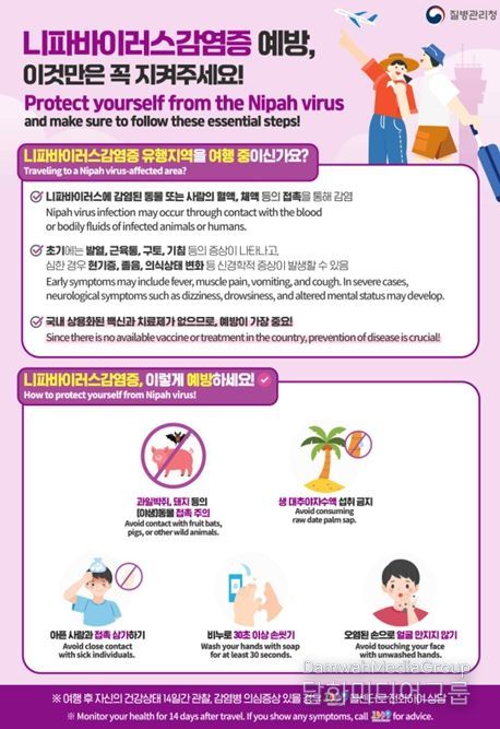 특히 치명률이 높고 백신과 치료제가 아직 개발되지 않은 ‘니파바이러스감염병’이 최근 법정 제1급 감염병으로 지정되면서 해외 감염병에 대한 경각심이 더욱 요구되고 있다.