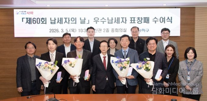시민행정신문 강갑수 기자 | 부산 사하구는 ‘제60회 납세자의 날’을 맞아 지난 5일 '2026년 사하구 우수납세자 표창패 수여식'을 개최하여 어려운 여건에서도 성실하게 지방세를 납부한 우수납세자에게 감사의 마음을 전했다.