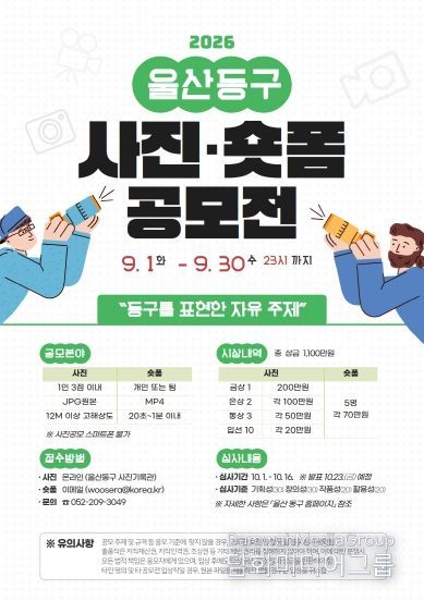시민행정신문 강갑수 기자 | 울산 동구는 오는 9월 1일부터 9월 30일까지 ‘2026 울산 동구 사진·숏폼 공모전’을 개최한다.