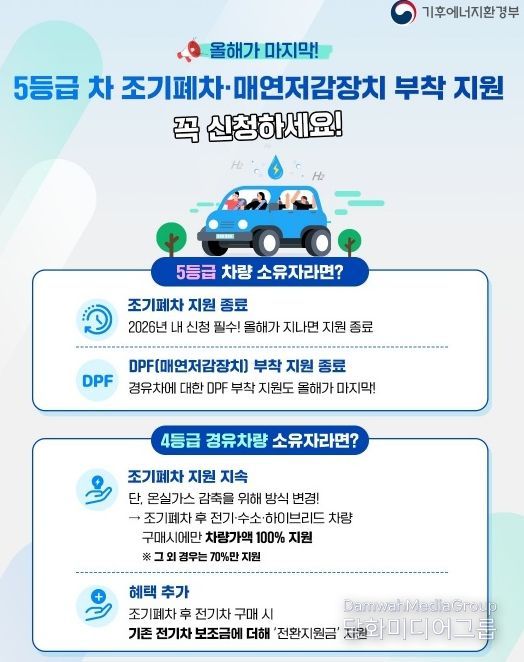 신청은 3월 5일부터 예산 소진 시까지 가능하며, 자동차배출가스 종합전산시스템을 통한 온라인 신청 또는 사천시청 환경보호과에 방문·우편신청을 통해 접수할 수 있다.