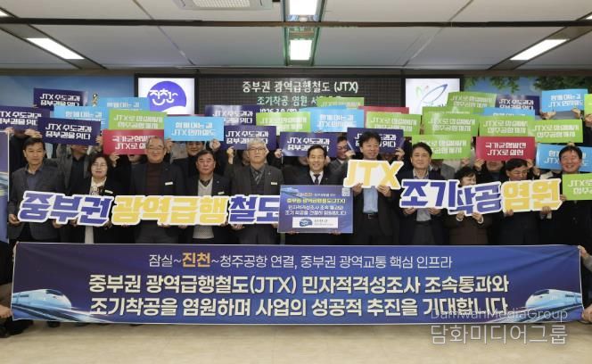 참석자들은 “JTX 조기 착공, 진천의 미래를 바꾼다”, “민자적격성조사 조속 통과 촉구” 등의 문구가 담긴 피켓을 들고 사업 추진 의지를 다졌다.