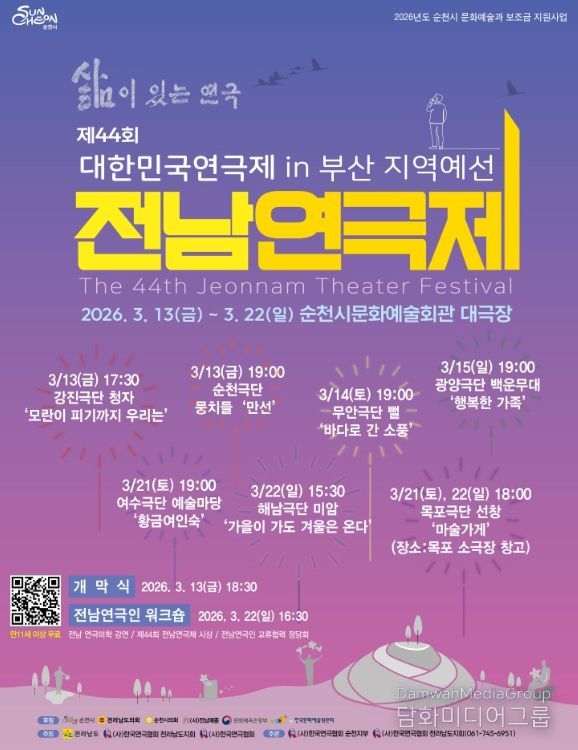 시민행정신문 강갑수 기자 | (사)한국연극협회 순천시지부는 ‘삶이 있는 연극’이라는 주제로 제44회 전남연극제를 오는 13일부터 22일까지 순천문화예술회관 대극장에서 개최한다고 밝혔다.