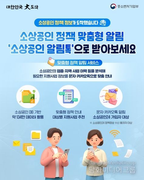 소상공인의 업종·지역·사업 이력 등을 분석해 필요한 지원사업 정보를 문자·카카오톡으로 맞춤 안내