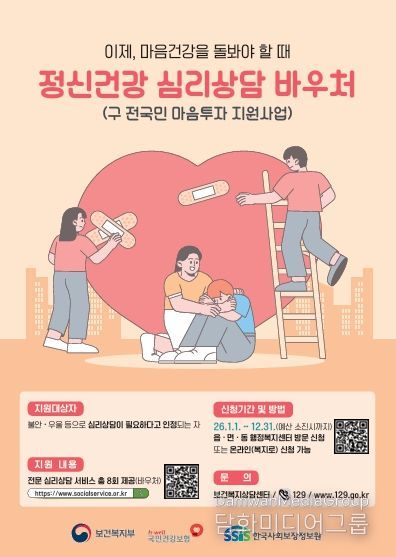 동구보건소 관계자는 “우울, 불안 등 심리적으로 어려움을 겪는 주민들이 건강한 일상을 회복할 수 있도록 적극 지원하겠다”라고 말했다.