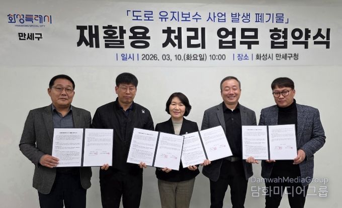 시민행정신문 강갑수 기자 | 화성특례시 만세구가 도로 유지보수 과정에서 발생하는 폐기물을 효율적으로 처리하고 자원 재활용을 확대하기 위해 관내 아스콘 생산 업체와 ‘폐아스콘 재활용 처리 협약’을 체결했다.
