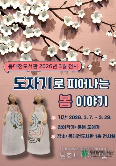 시민행정신문 강갑수 기자 | 동대전도서관은 3월 29일까지 1층 전시실에서 도예작품과 꽃 관련 전시회 ‘도자기로 피어나는 봄 이야기 展’을 개최한다.