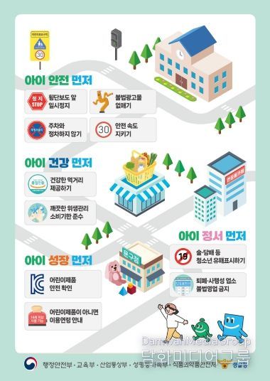 참여자들은 학교 인근 공사장 주변과 통학로를 도보로 이동하며 안전 취약 지점을 확인하고, 학교 앞 문구점을 방문해 어린이 식품 안전 관련 사항을 점검했다. 이어 학교 정문 앞에서 ‘아이먼저’ 어린이 안전문화 캠페인을 전개했다.